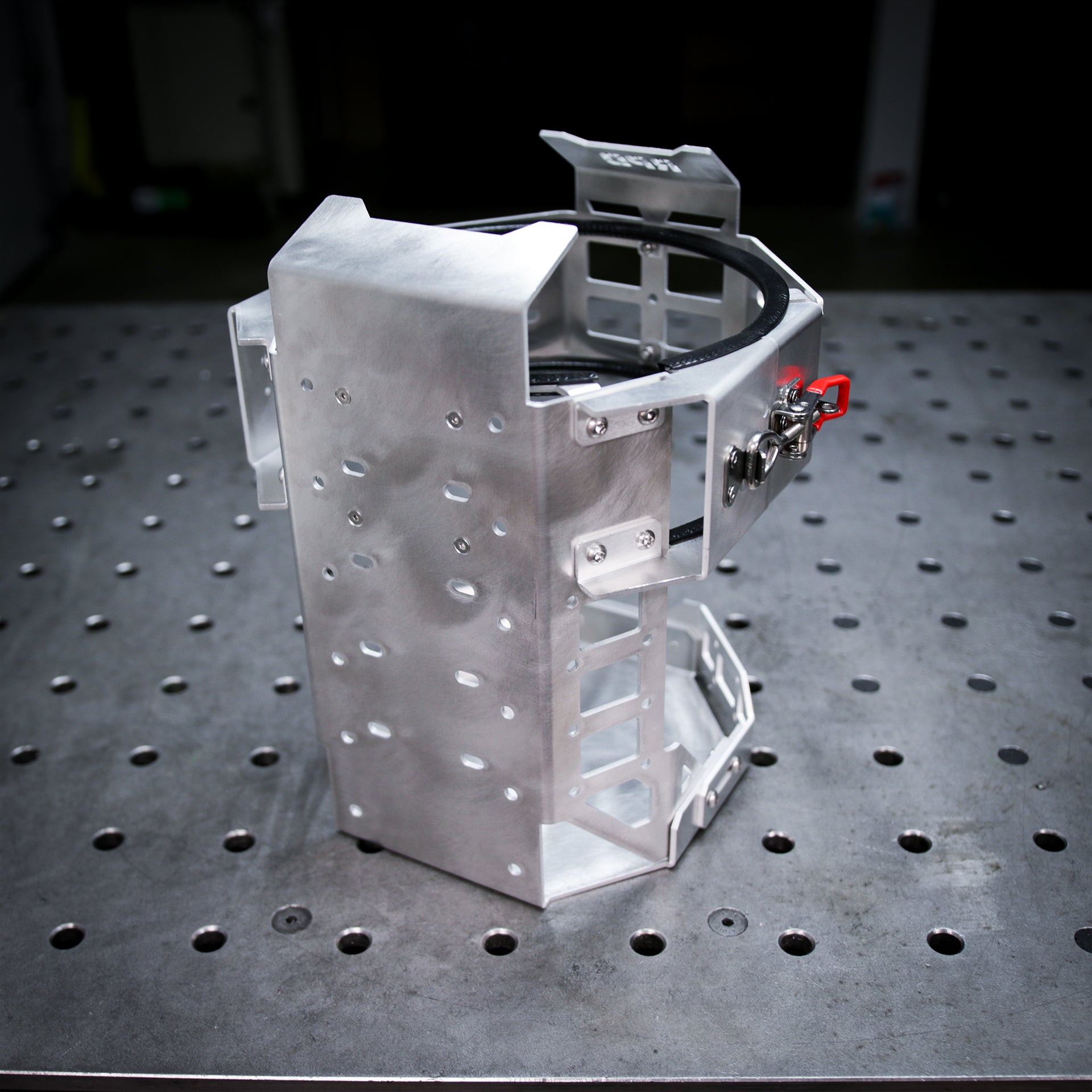 - Laser-cut from 5052 Aluminum: Combining lightweight strength and rust free material.