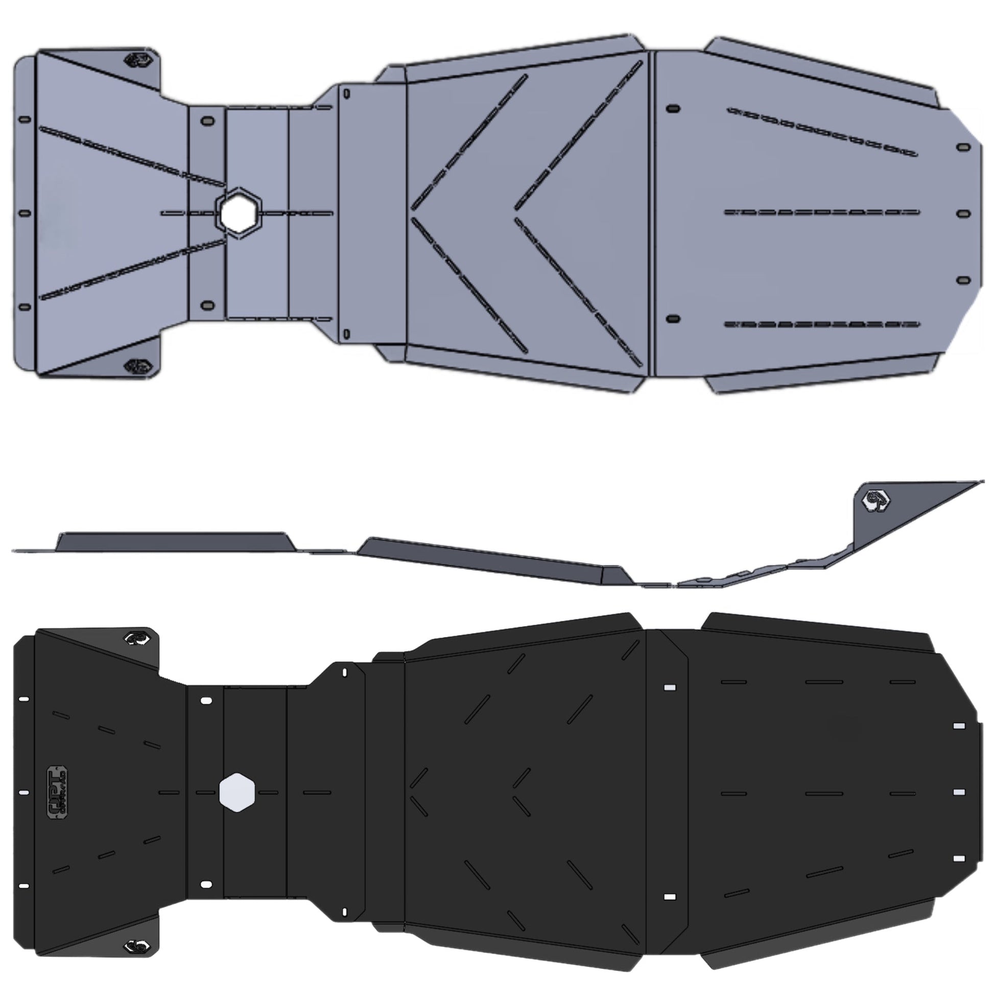 - Standard (protects radiator, front differential, and engine oil pan)